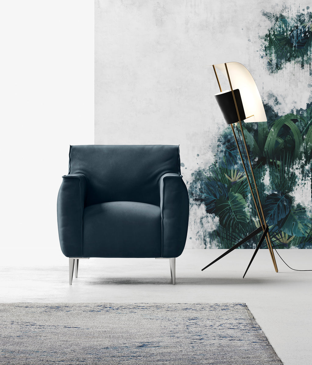 Luna can be upholstered in fabric, microfibre, eco-leather and leather and is completely removable except for the leather version. FEATURES: This product is not classified as fire-retardant.