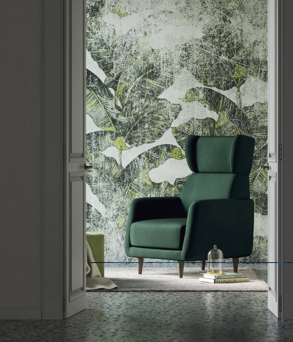 backrest is made of polyurethane foam of double density 25/35 kg/m3, both coated with 100 gr. resin-coated jersey. COVERING: Roberta can be upholstered in fabric, microfibre, eco-leather