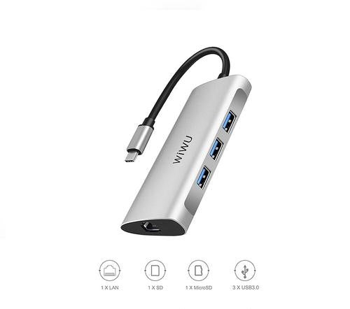 MacBook Type-C Converter 6 in 1 Alpha 631STR,6 in 1 hub, RJ45 hub, Micro SD hub, 3 USB HUB